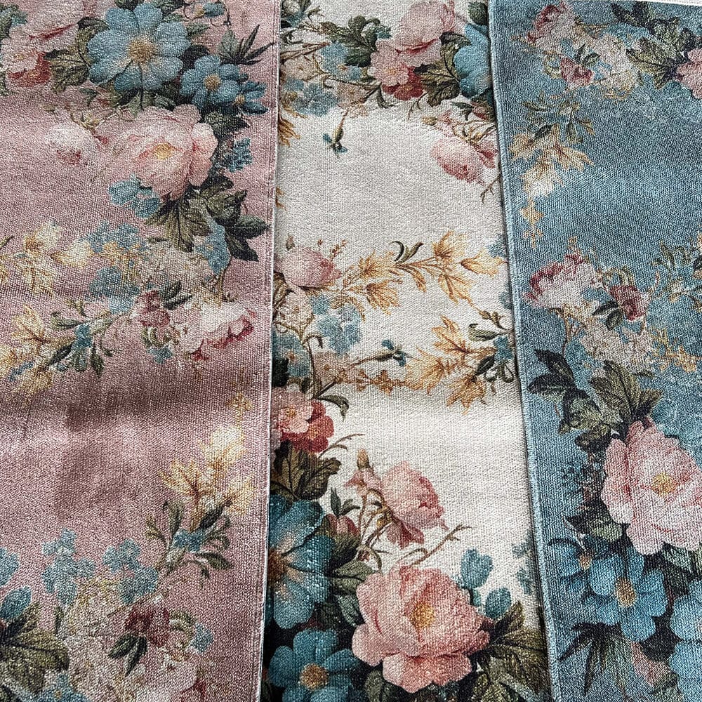 Añade un toque de elegancia clásica a tus espacios con la alfombra Velour Victorian Rosa de L’Atelier 17 .