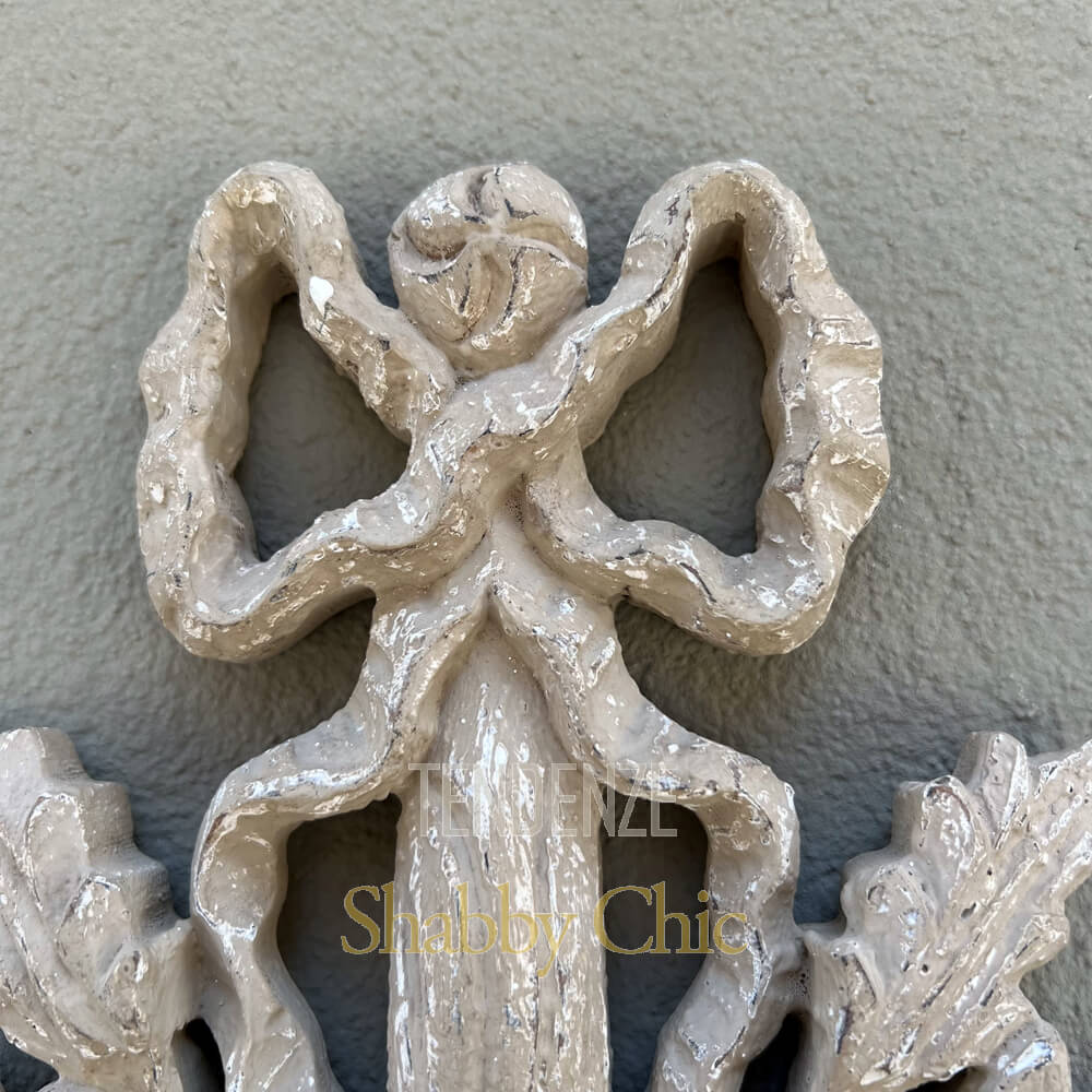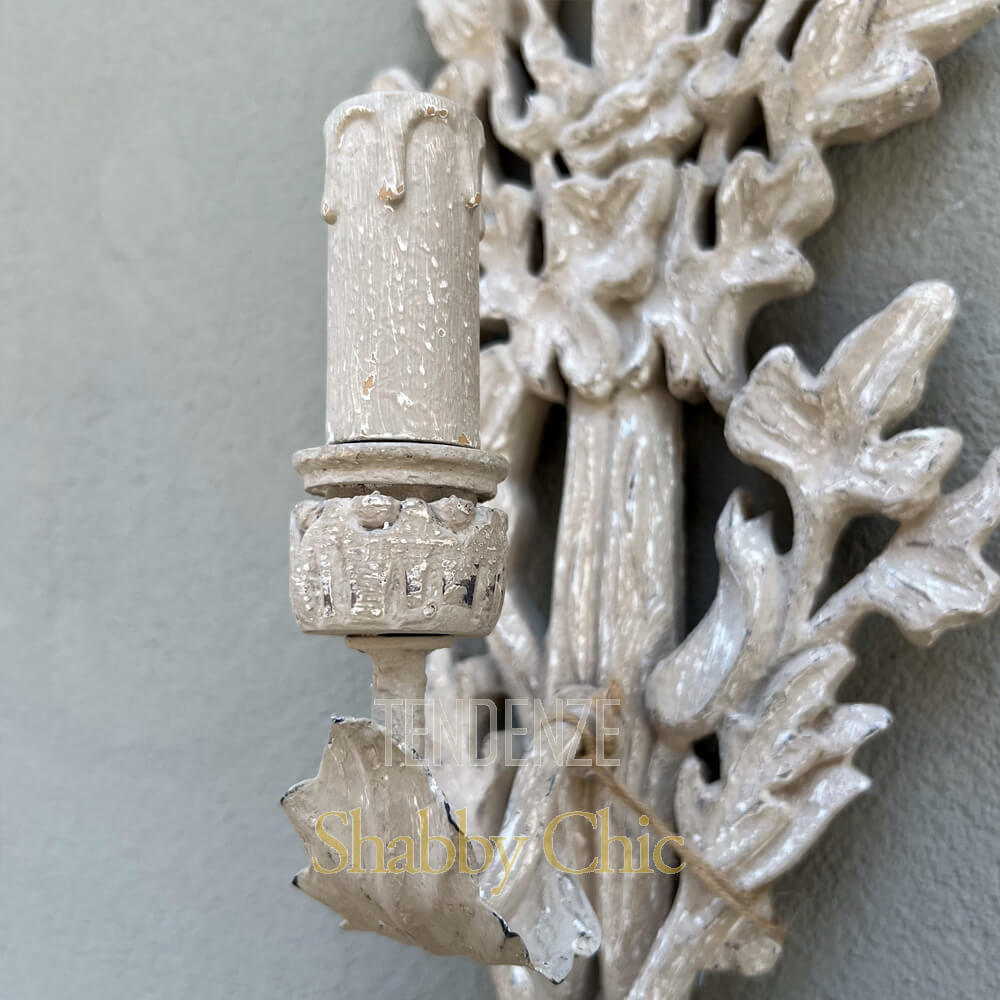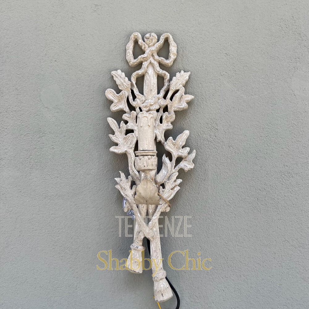 Aplique de madera Shabby chic con un punto de luz, de estilo clásico y romántico con un lazo en la parte superior.