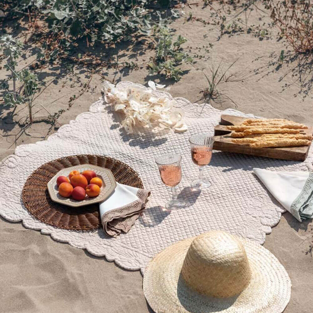 Este centro de mesa Blanc MariClò está hecho de algodón 100% acolchado, con un refinado relieve que crea motivos florales y geométricos. El color blanco puro realza la textura suave y texturizada, mientras que el borde perfilado le da un toque romántico y atemporal. Perfecta como centro decorativo, alfombra de picnic chic o base para arreglos florales, encaja con elegancia natural en ambientes Shabby Chic, provenzales y costeros.