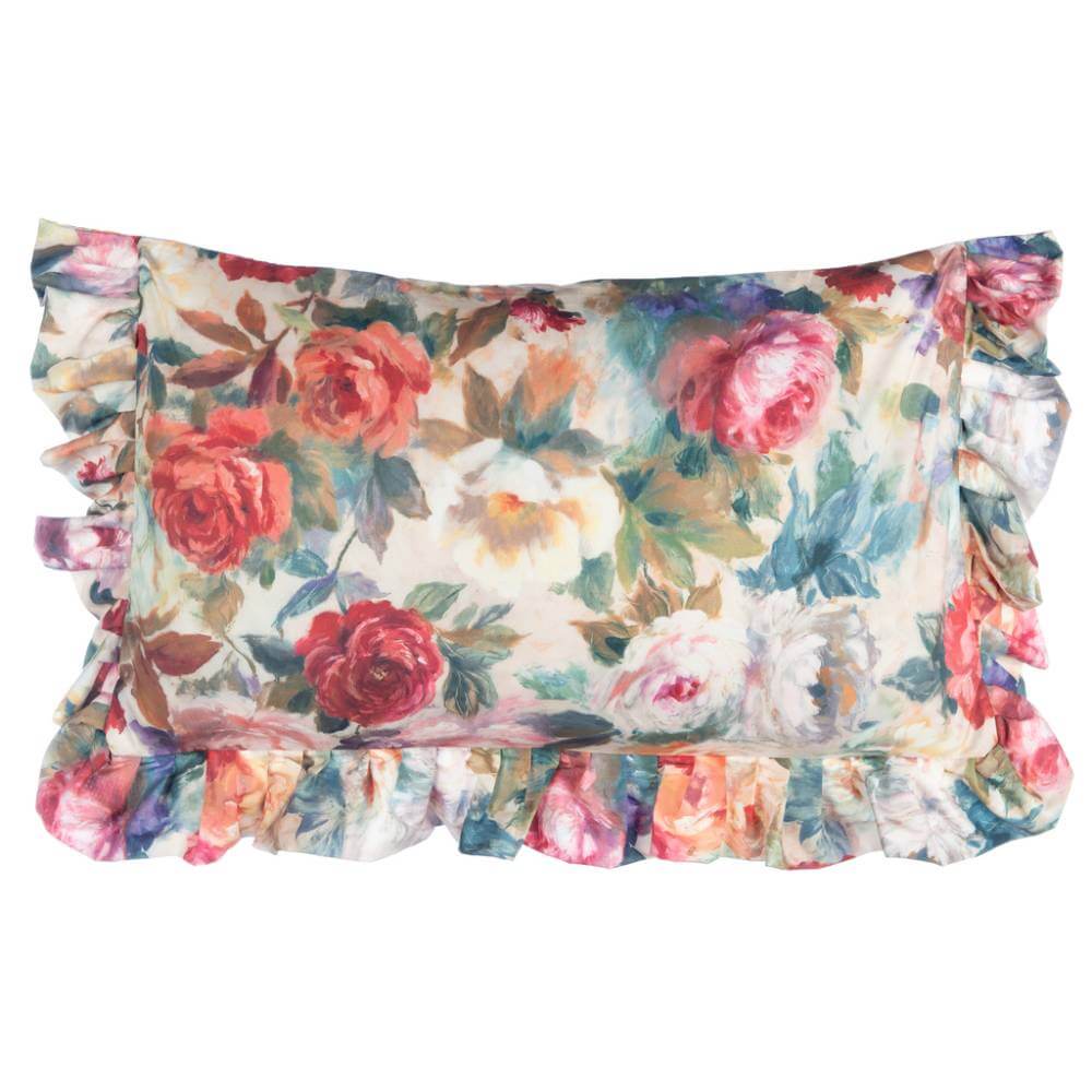 De suave microfibra, presenta un alegre motivo floral sobre un fondo claro en tonos rosa, rojo, lila, azul claro y verde.