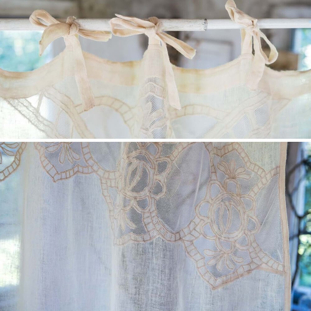 Elegante y ligera, la cortina Blanc MariClo de la colección Dentelle combina la naturalidad del lino con la delicadeza de los detalles de encaje perforado tono sobre tono. El tejido semitransparente filtra suavemente la luz, creando un ambiente romántico y acogedor. Los lazos de tela permiten sujetarla fácilmente a la varilla, añadiendo un toque Shabby Chic perfecto para ambientes campestres, provenzales o clásicos. Ideal en el salón o el dormitorio para quienes buscan encanto y sofisticación.