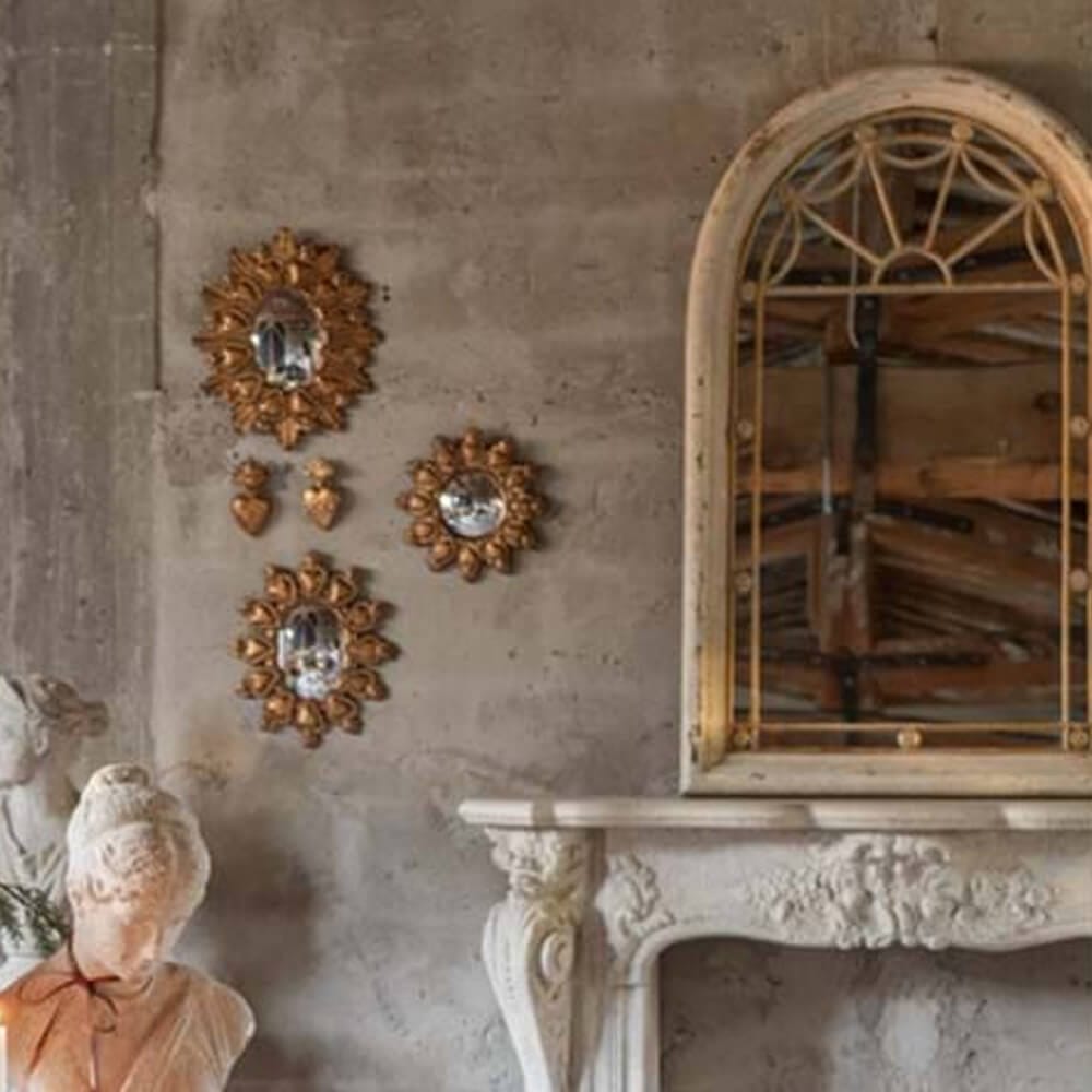 El espejo ovalado Blanc MariClò de la colección Ex Voto se distingue por su marco de resina dorada, adornado con corazones ardientes en relieve, un símbolo icónico de devoción y pasión. El acabado envejecido da a la pieza un aspecto vivido y precioso, perfecto para ambientes Shabby Chic, clásicos o barrocos. Ideal como punto focal en paredes desnudas o en composición con otros espejos de la misma línea, confiere elegancia y carácter a entradas, salones o dormitorios.