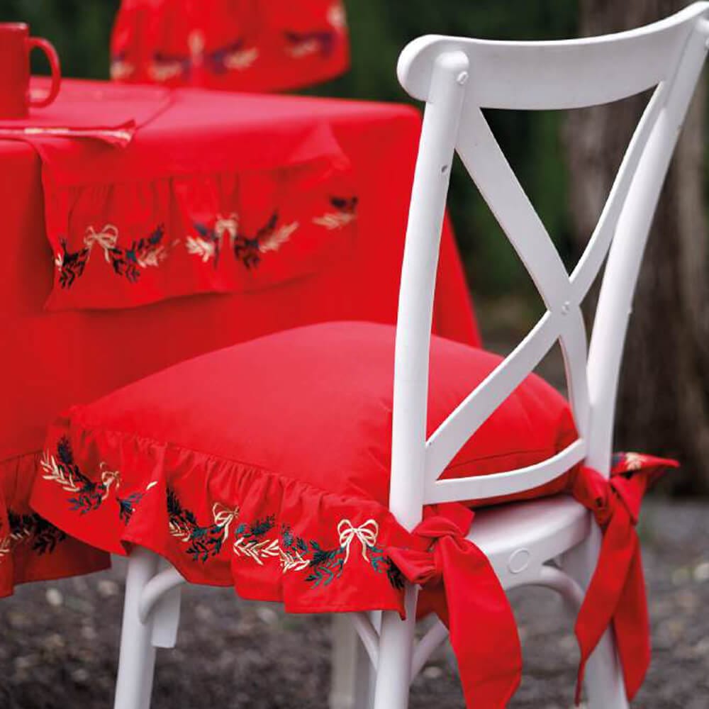 Cojín para Silla Clodette Bordado Rojo Fantasía con Rouche 43×43+10 cm