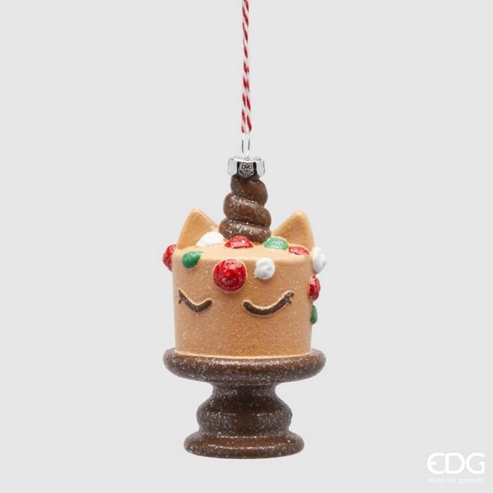 La decoración para tartas EDG de la colección Pan de jengibre aporta dulzura y alegría al árbol de Navidad. Fabricado en plástico irrompible, representa un pastel sobre una contrahuella decorado con crema, virutas rojas, verdes y blancas, aurículas estilizadas y un cuerno central de purpurina estilo unicornio. El acabado en azúcar mate lo hace perfecto para ambientes lúdicos, de temática pastelera o habitaciones infantiles.