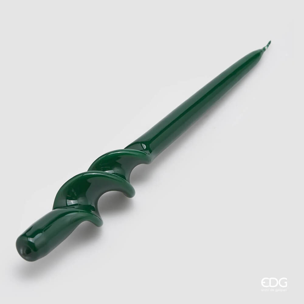 Vela espiral Twist verde fabricada por Enzo De Gasperi. Ideal para candelabros y candelabros durante la época navideña. 📏Dimensiones: