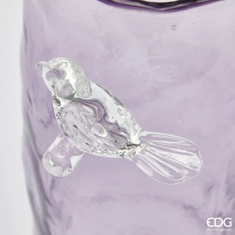 EDG Jarrón cilíndrico lavanda con decoración de pájaros H27