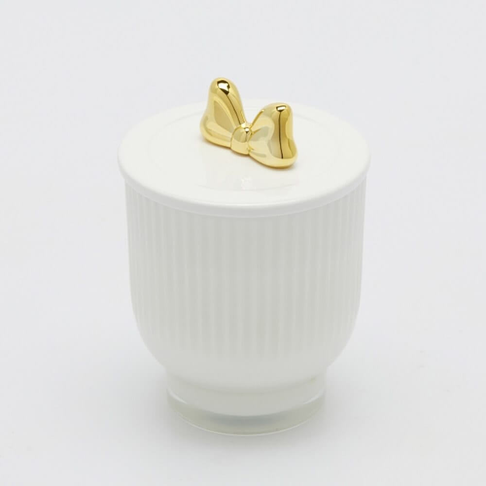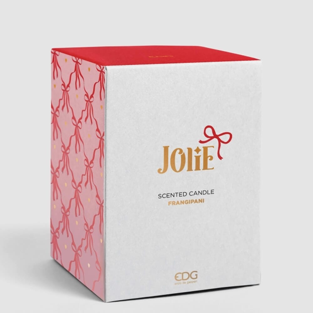 La vela perfumada EDG de la colección Jolie es un refinado objeto decorativo que desprende una delicada fragancia de rosas. Presentada en un elegante tarro de cerámica blanca con tapa decorada con un brillante lazo dorado, combina estética y funcionalidad. La caja de regalo con el logotipo impreso también lo hace ideal para regalos sofisticados. Con 230 gramos de cera natural, garantiza unas 35 horas de fragancia continua.