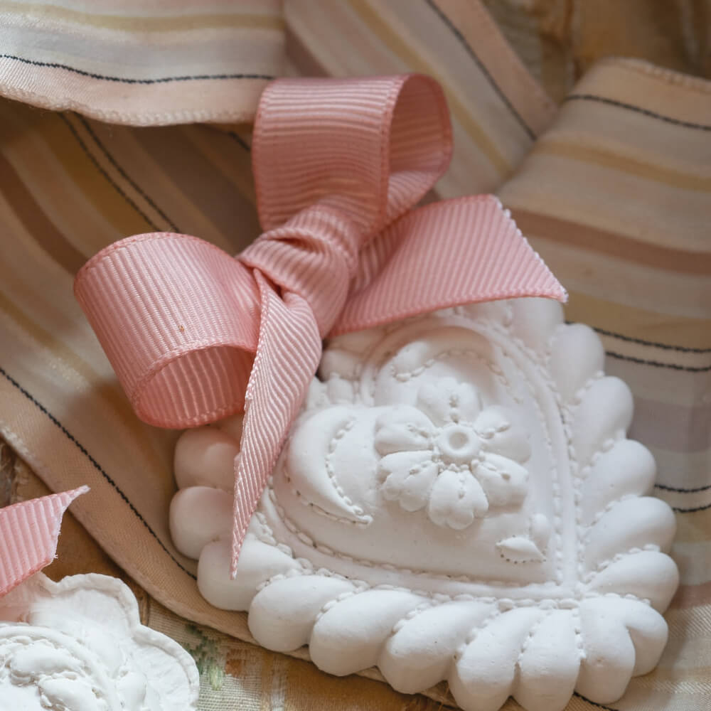 Mathilde M. Corazón de yeso perfumado con cinta Marquise 5×5