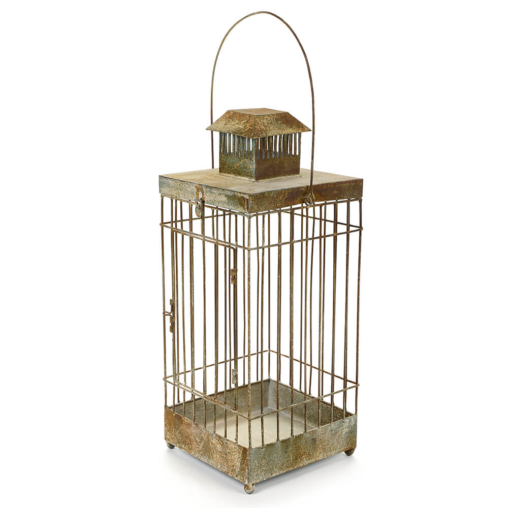 Jaula de metal efecto envejecido con asa, perfecta para usar como farol, macetero o para crear fantásticos arreglos.