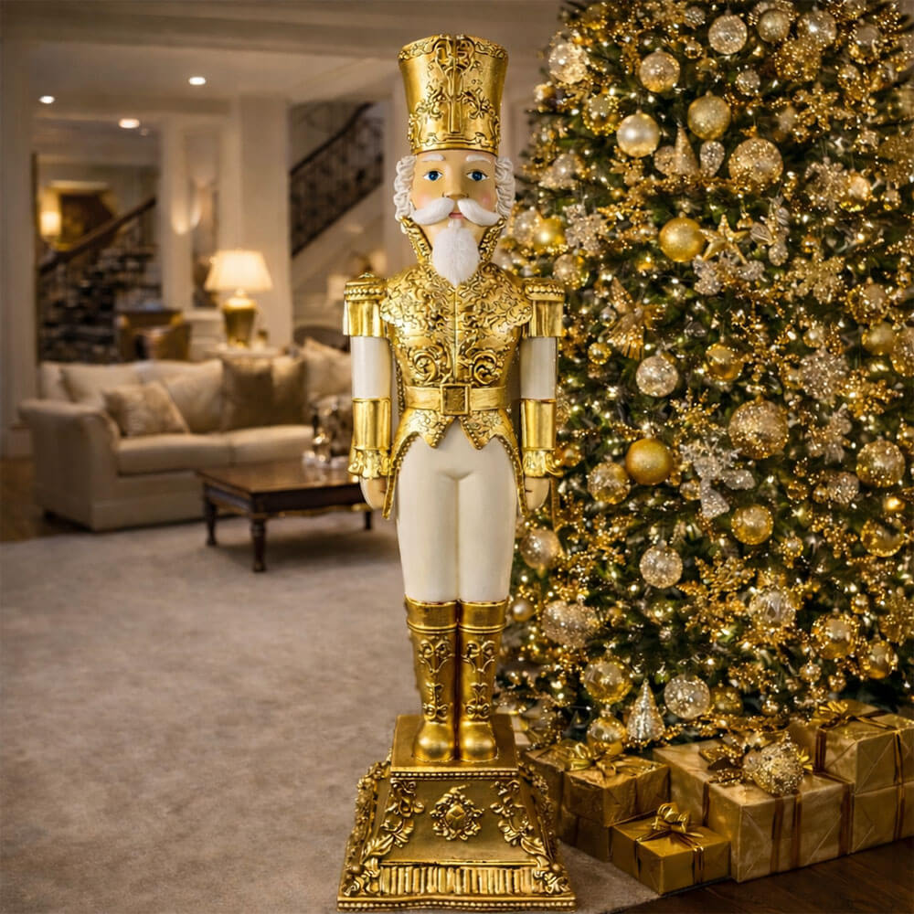 Una impresionante decoración navideña de resina dorada para una Navidad elegante y majestuosa.