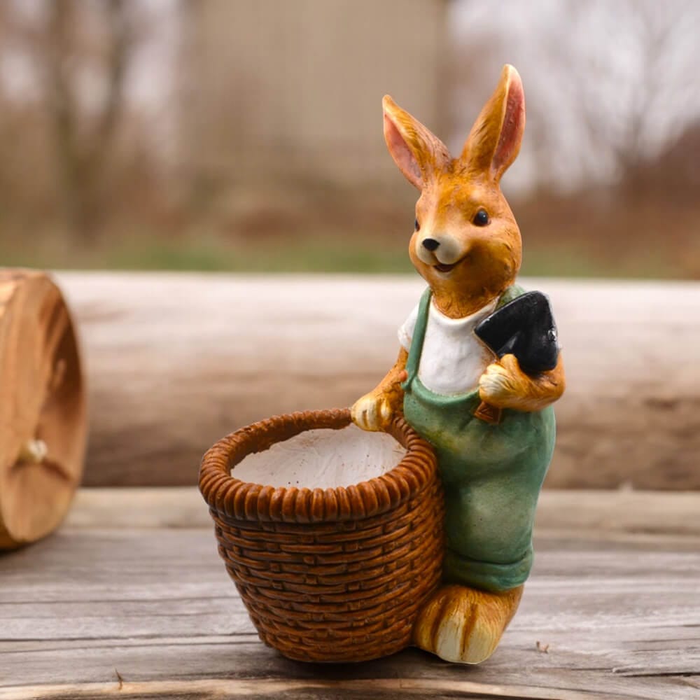 ✔ Design détaillé et réaliste – Lapin avec une grenouillère verte, une pelle de jardinage et un panier.