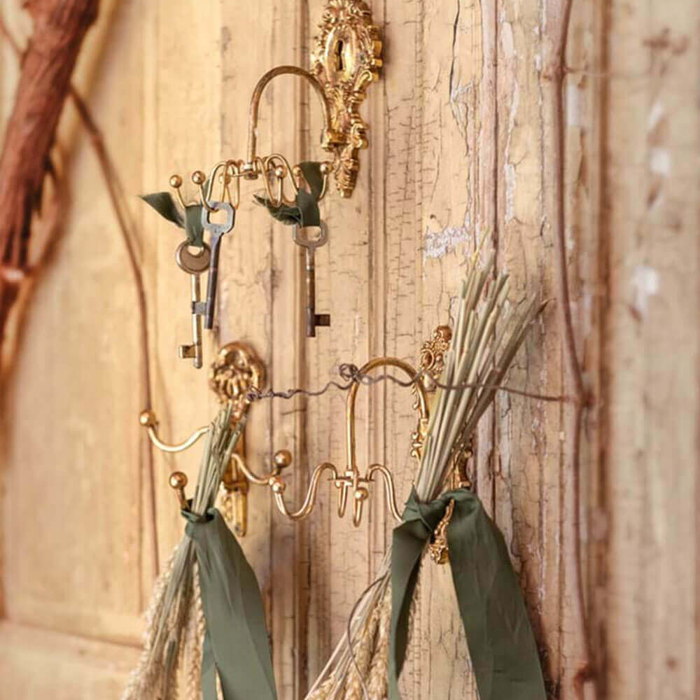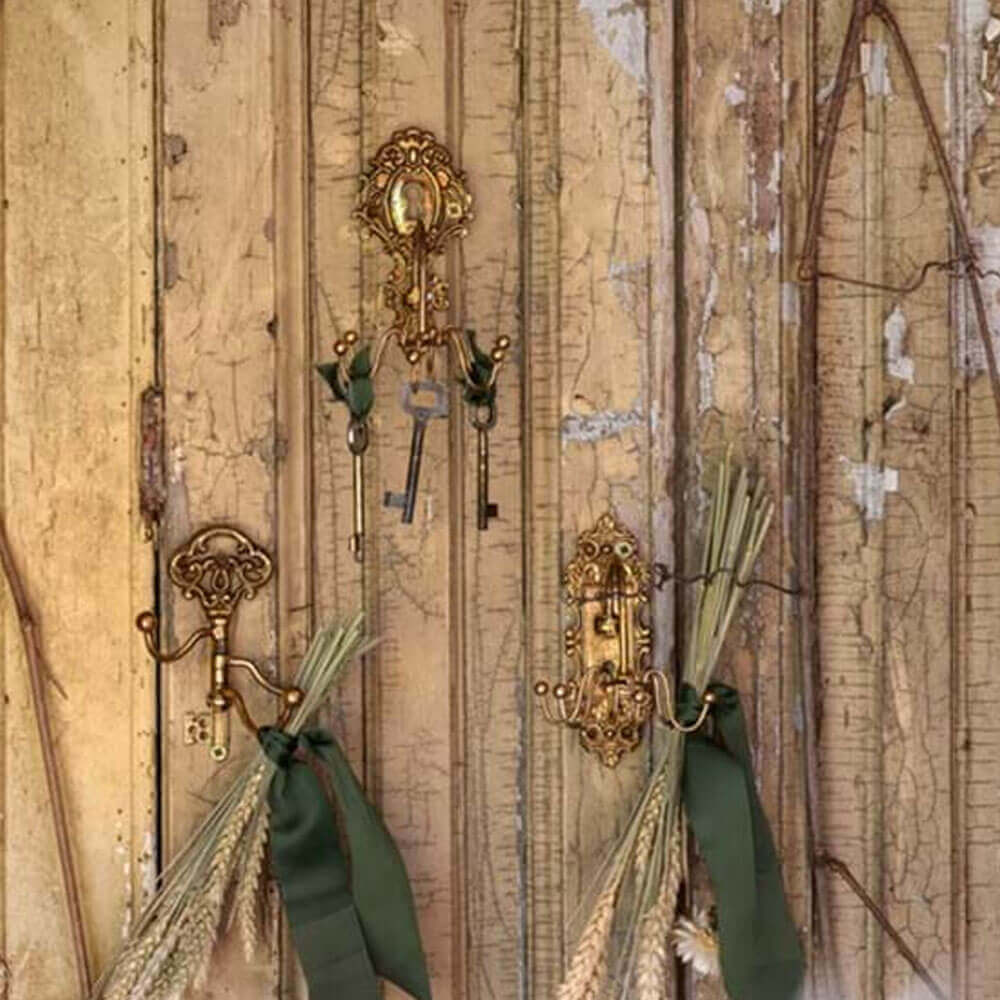 Le cintre Blanc MariClò de la collection Andromeda est réalisé en étain avec une finition antique raffinée dans des tons chauds et vécus. La plaque verticale est ornée de riches motifs ornementaux de style baroque et d’une élégante serrure, élément distinctif de la collection. Les cinq crochets courbés avec des terminaisons sphériques offrent praticité et solidité et sont parfaits pour suspendre des clés, de petits accessoires, des décorations ou des textiles légers. Idéale pour les entrées, les cuisines ou les salles de bains, elle donne du caractère et un charme intemporel aux pièces.