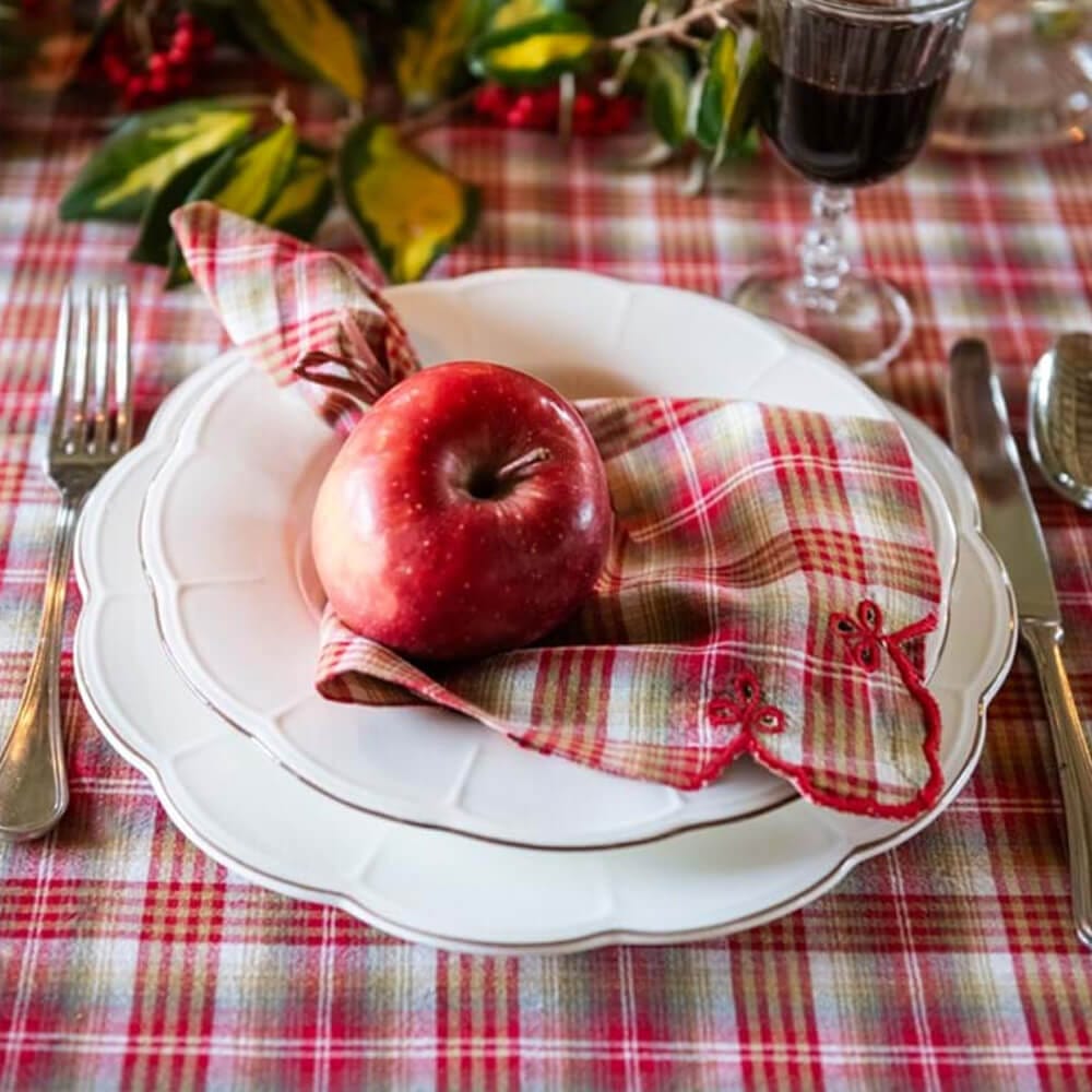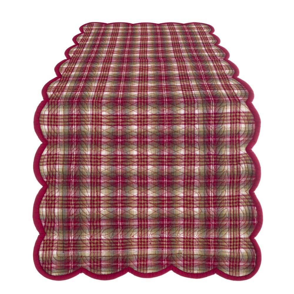 Chemin de table en pur coton avec motif tartan rouge et bordure façonnée, idéal pour les tables chaleureuses et accueillantes. Collection Montana Red.