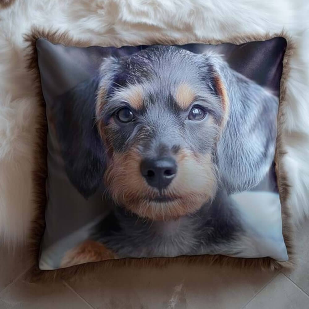 Le coussin emblématique de Blanc MariClò allie douceur et style avec l’impression hyperréaliste d’un chiot à l’air tendre. La bordure en fausse fourrure à effet pelucheux, douce et chaude au toucher, est idéale pour apporter une touche de confort et d’affection à votre intérieur. Parfait sur les canapés, les fauteuils ou dans les chambres d’enfants, il s’intègre gracieusement dans les décors romantiques et Shabby Chic. Il fait partie de la collection « Amici Animali », conçue pour ceux qui aiment s’entourer de détails câlins et respectueux des animaux.