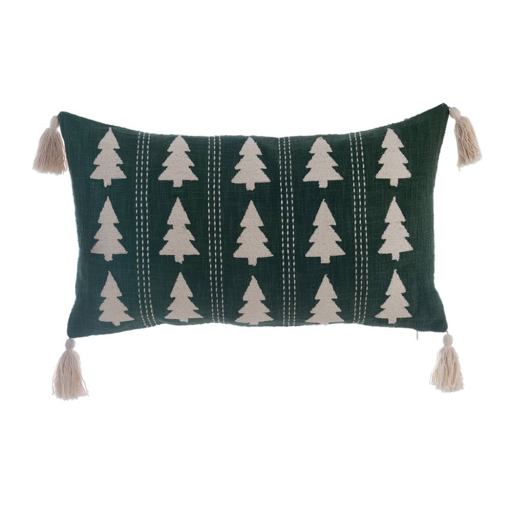 Le coussin ‘Arbres de Noël’ de Blanc MariClo est un accessoire d’ameublement parfait pour donner une touche festive et raffinée à la pièce. Réalisé en 100 % coton, il présente une base vert forêt sur laquelle se détachent des jeunes arbres brodés de couleur crème, disposés en colonnes verticales qui créent un motif élégant et répétitif. Les quatre glands couleur beurre, appliqués aux coins, donnent un détail boho-chic au coussin.