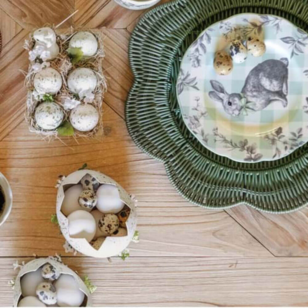 Décoration de Pâques raffinée de Blanc MariClò, l’œuf de la collection Fior di Pasqua séduit par son design original : une coquille brisée finement travaillée avec des éclats dorés, reposant sur une base en forme de nid entrelacé de brindilles, de fleurs printanières et de baies vertes. Disponible en trois délicates teintes pastel (rose, bleu clair et vert), il est parfait comme porte-coquetier, centre de table ou simple élément décoratif pour enrichir les mises en place et les coins thématiques.