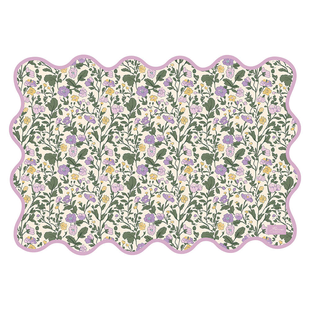 Le set de table Blanc MariClò de la collection Linda est fabriqué en 100 % vinyle, conçu pour allier fonctionnalité et esthétique raffinée. La surface est décorée d’un délicat motif floral de branches entrelacées dans des tons naturels de vert sauge, de lilas et de jaune tendre sur un fond clair. La bordure lilas ondulée encadre le set de table d’une touche romantique et féminine. Souple, durable et facile à nettoyer, il est idéal pour le petit-déjeuner, le déjeuner quotidien ou pour dresser avec style une table Shabby Chic ou printanière.