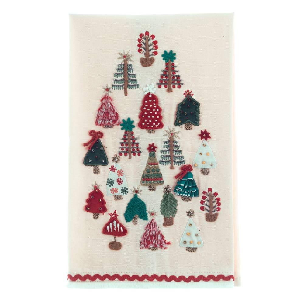Blanc MariClò Torchon brodé Arbres 40×70 Noël