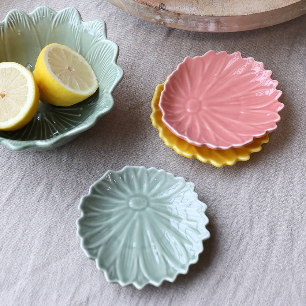 Sa forme inspirée du nénuphar et sa teinte délicate en font un objet idéal pour servir de petits desserts, des chocolats ou des pâtisseries de manière raffinée.