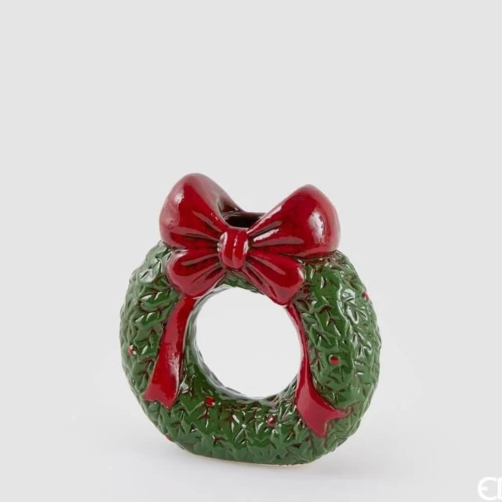 Ce bougeoir en céramique EDG représente une couronne de Noël stylisée, décorée d’un nœud rouge tridimensionnel et de baies en relief. La finition émaillée donne de l’éclat et de la profondeur aux couleurs, ce qui en fait un objet idéal pour rehausser les étagères, les tables d’appoint ou les coins décoratifs d’une touche festive. Le trou supérieur peut accueillir une seule bougie, ce qui permet d’embellir n’importe quel coin de la maison.