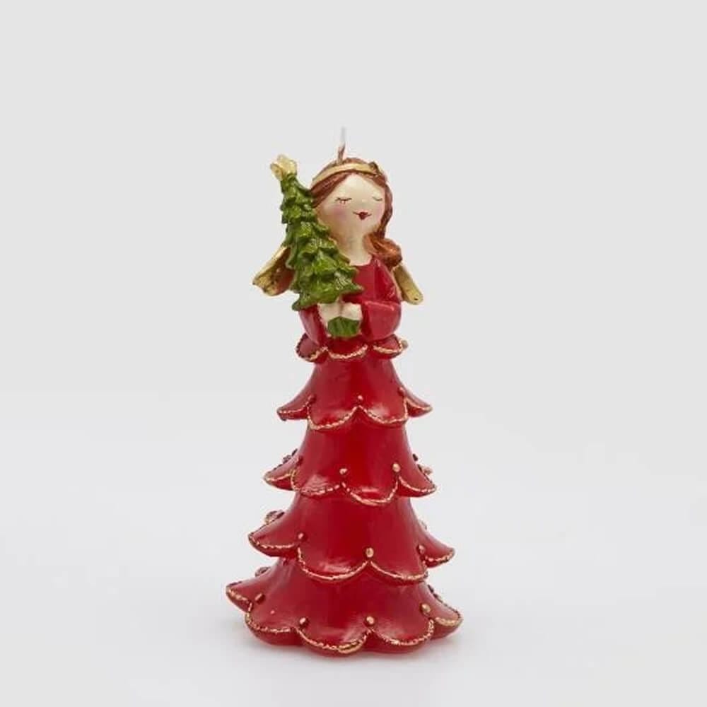 Cette bougie EDG représente un gracieux ange de Noël vêtu d’une robe rouge à volants garnie de paillettes d’or. L’ange tient dans ses mains un petit sapin scintillant, dans une élégante combinaison de rouge et d’or. Entièrement en cire, cette bougie est idéale pour décorer une table de fête ou un coin particulier de la maison. Sa forme sculpturale et sa fabrication soignée en font également un objet raffiné.