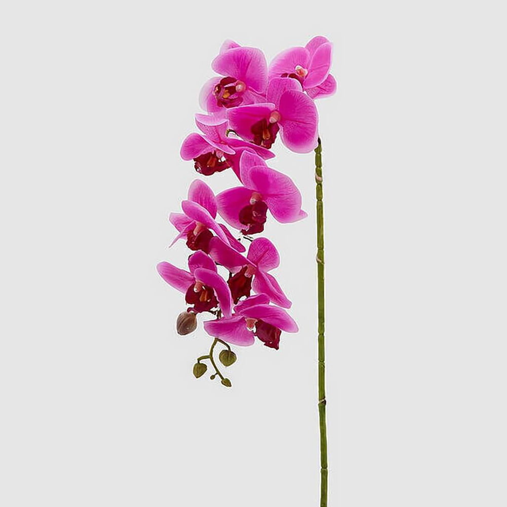 Branche d’orchidée fuchsia artificielle à 9 fleurs, effet toucher réel, longueur 76 cm.