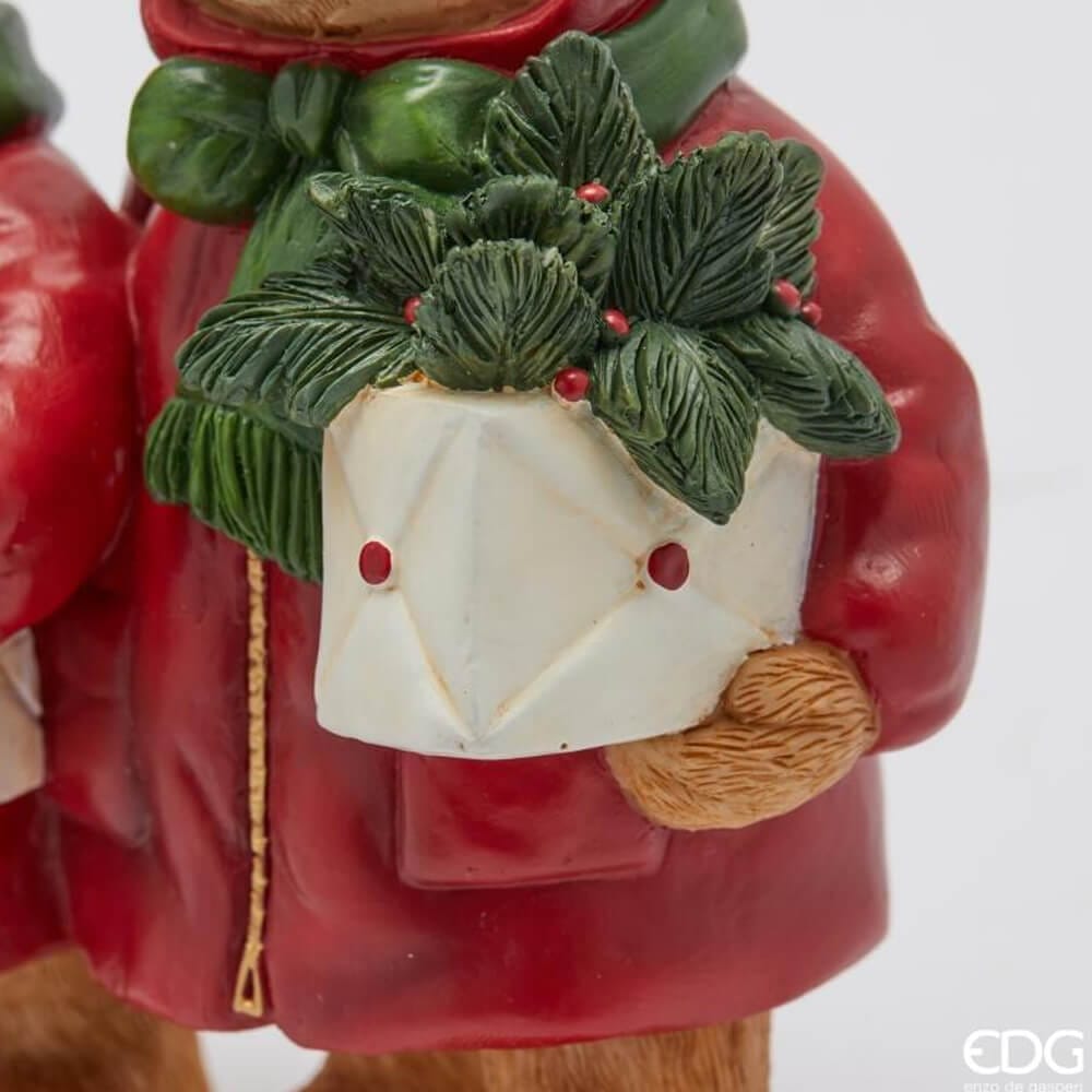 Cette paire d’ours de Noël d’Enzo De Gasperi apporte une touche tendre et joyeuse aux décorations hivernales. Réalisés en polyrésine avec une finition soignée, ils portent des manteaux rouges brillants et des écharpes vertes. L’un des ours tient une enveloppe blanche scellée, tandis que l’autre tient une plante décorative aux feuilles vertes et aux baies rouges. Grâce à leur forme compacte, ils sont parfaits pour les étagères, les centres de table ou comme idée de cadeau raffinée et originale.