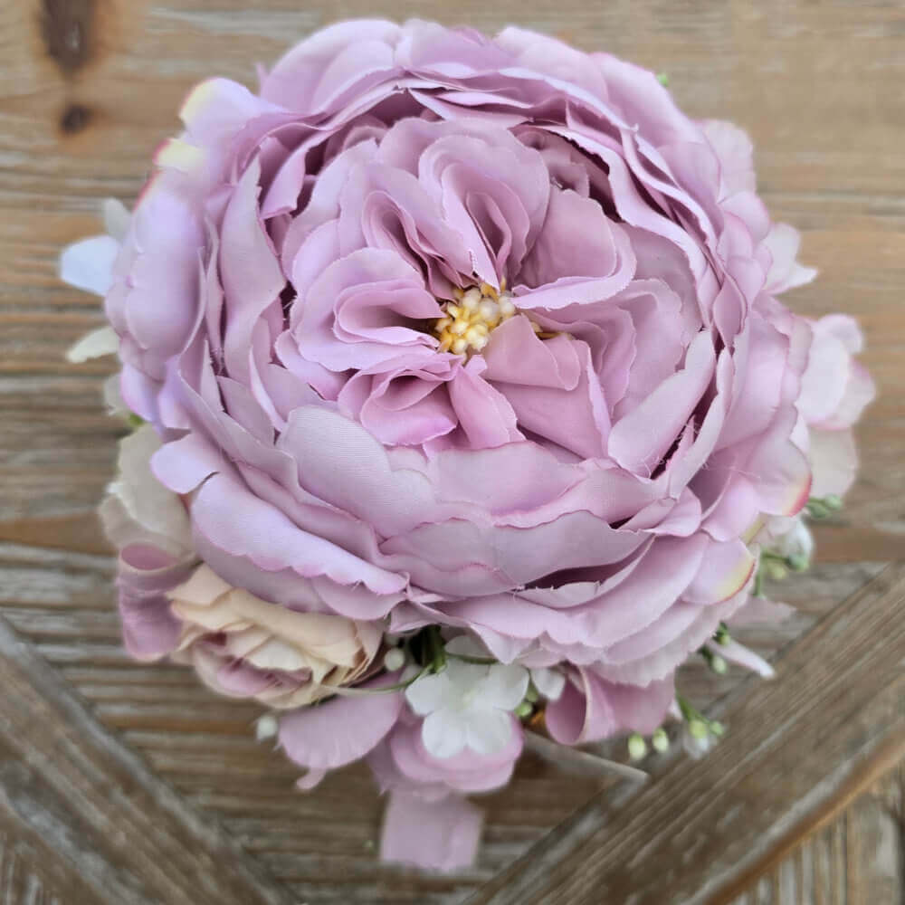 Petit, précieux, irrésistiblement romantique : le Pouf avec pivoine, hortensia et 2 fleurs papillon de Fiori di Lena (Ø 14 x H 14 cm) est une création Shabby Chic qui semble née pour raconter une douce histoire. La base rembourrée, douce et raffinée, accueille une pivoine dans des tons mauves poudrés, entourée d’hortensias et de délicates petites fleurs qui donnent un effet de » nuage » léger et harmonieux.