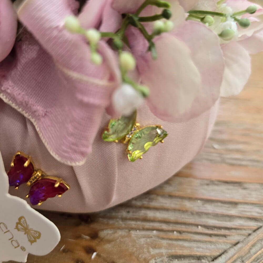 Les deux papillons décoratifs, aussi brillants que de petits bijoux, ajoutent une touche féerique et symbolique : légèreté, renaissance, beauté.