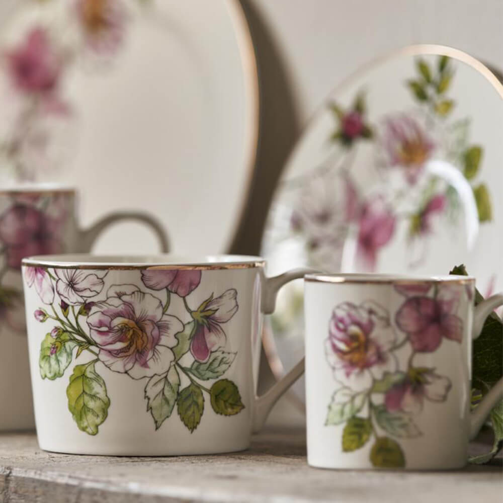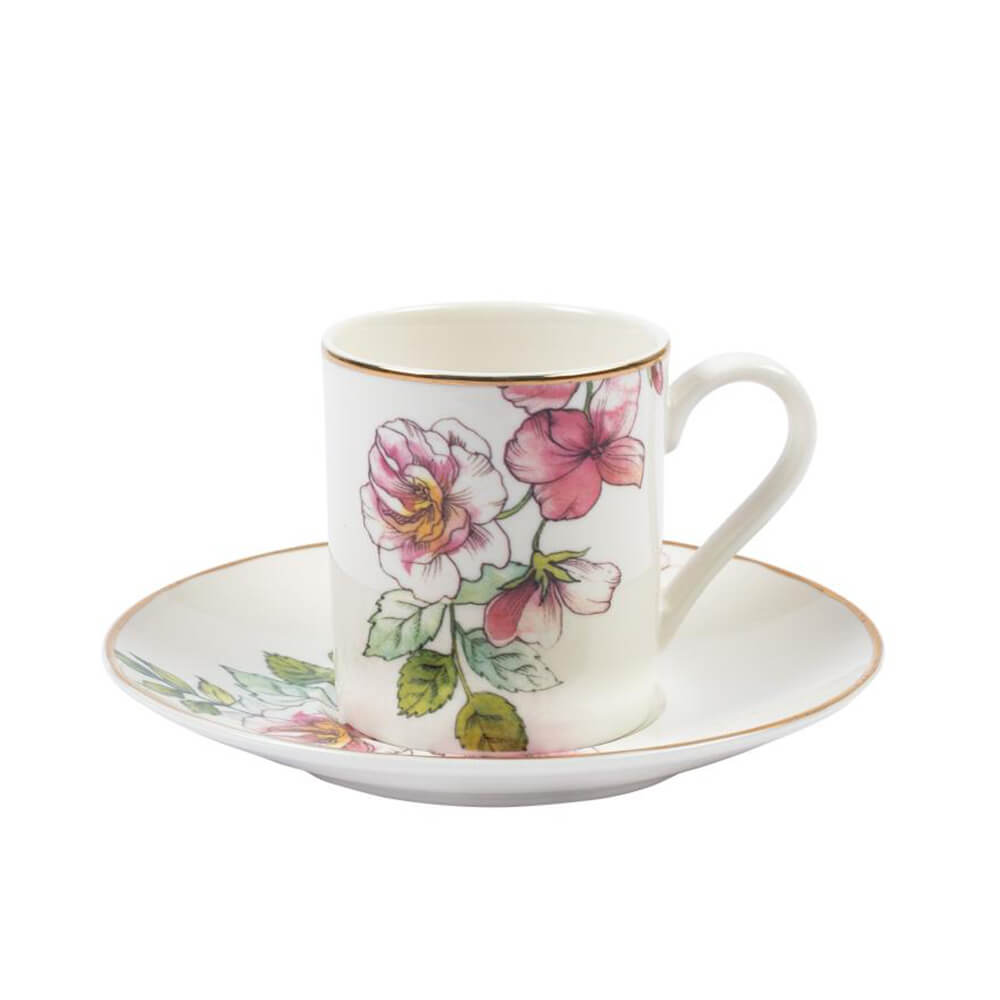 Luxe Lodge Paire de tasses à café à décor floral avec soucoupe et bord doré