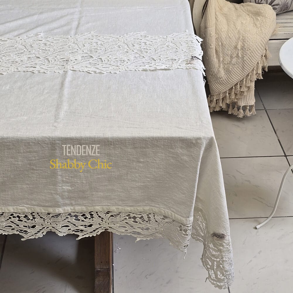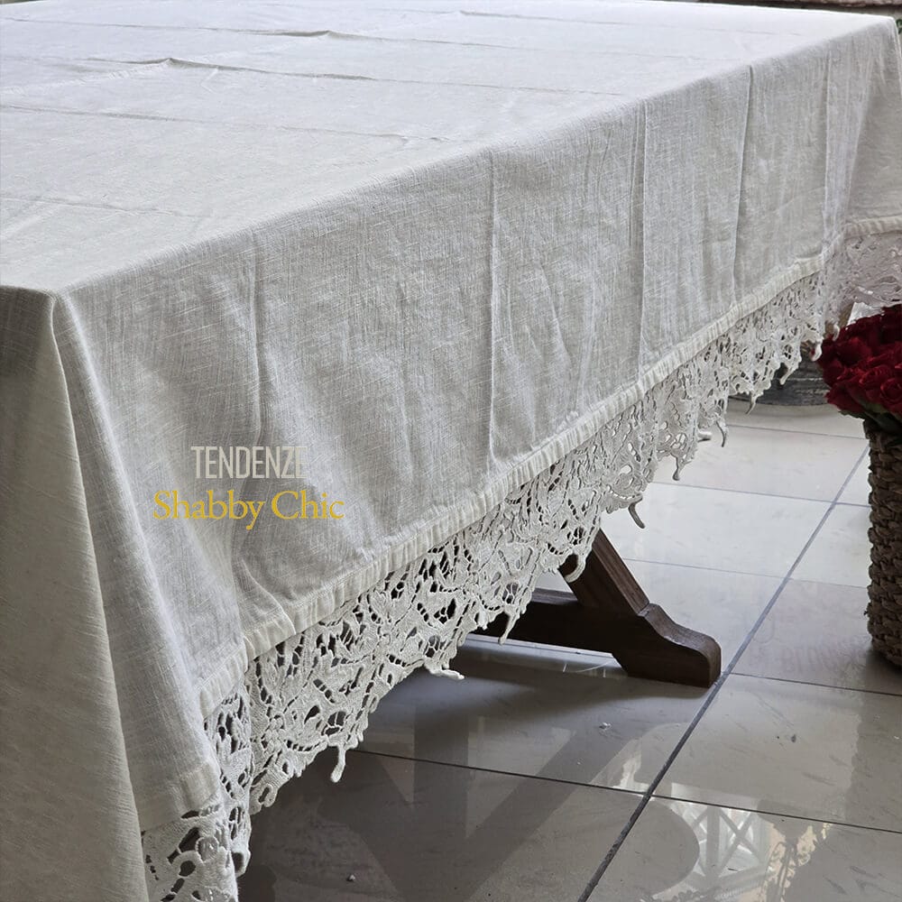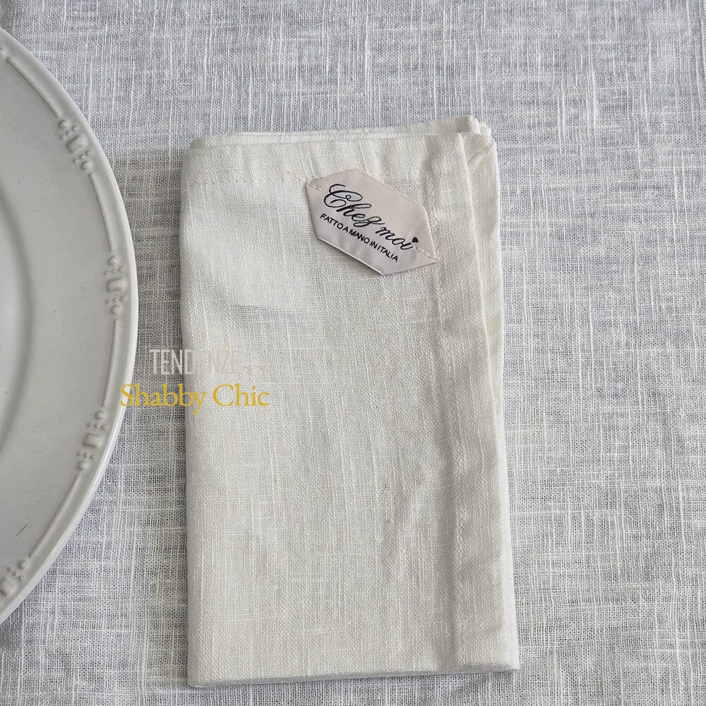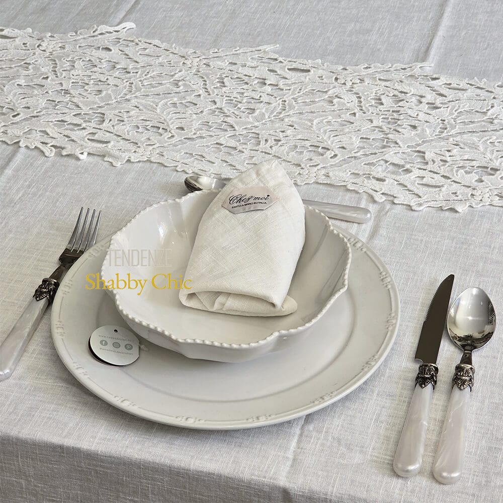 Embellissez votre table avec la nappe naturae en lin blanc mélangé, fabriquée à la main par les artisans italiens de Chez Moi.