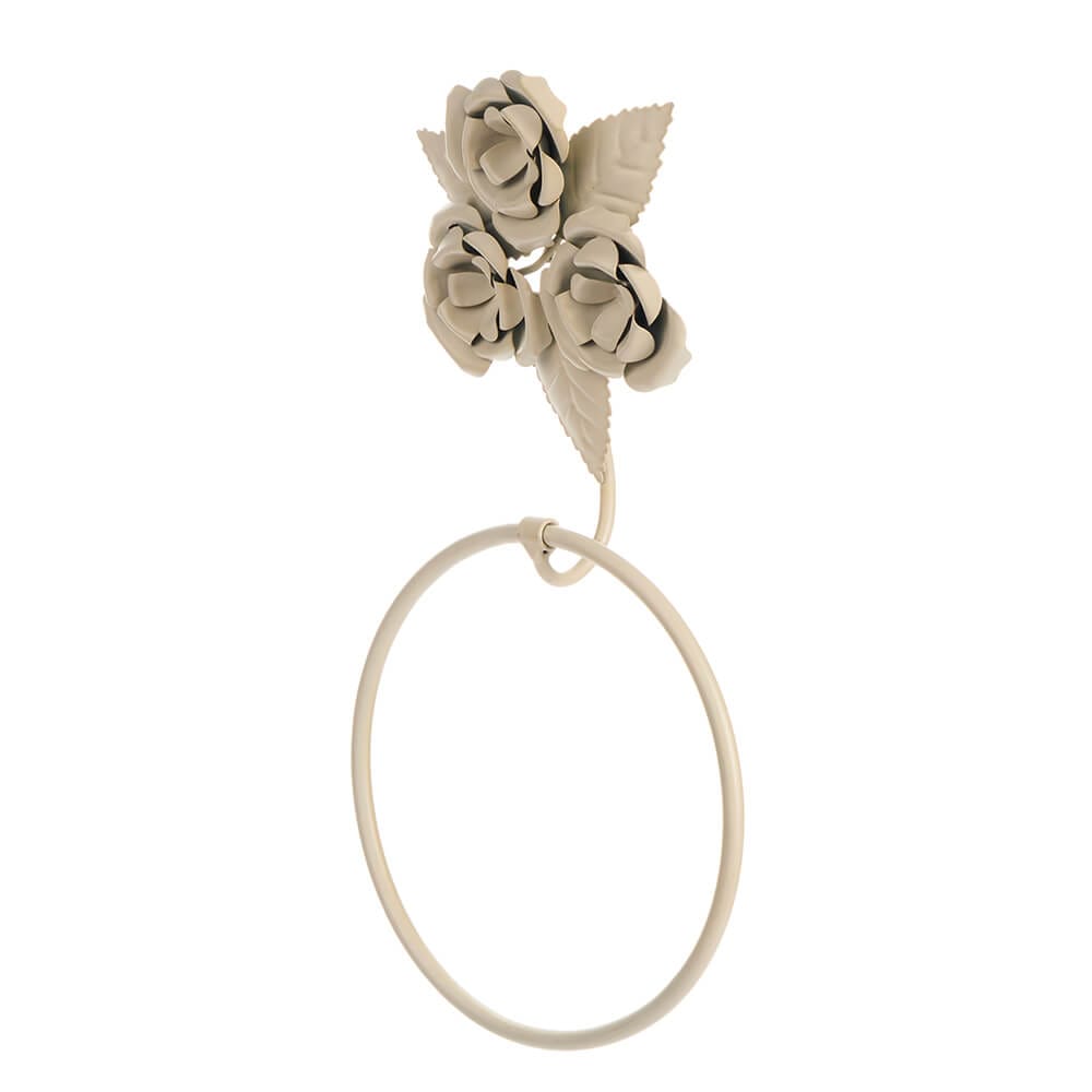 Le porte-serviettes avec roses de Nuvole di Stoffa est une solution élégante pour décorer la salle de bains de manière romantique. Fabriqué en métal gris tourterelle mat, il présente trois roses gaufrées avec des feuilles décoratives au sommet et un anneau large et stable pour suspendre les serviettes ou les serviettes d’invités. Parfaite pour les décors shabby, classiques ou campagnards, elle allie délicatement fonction et style.
