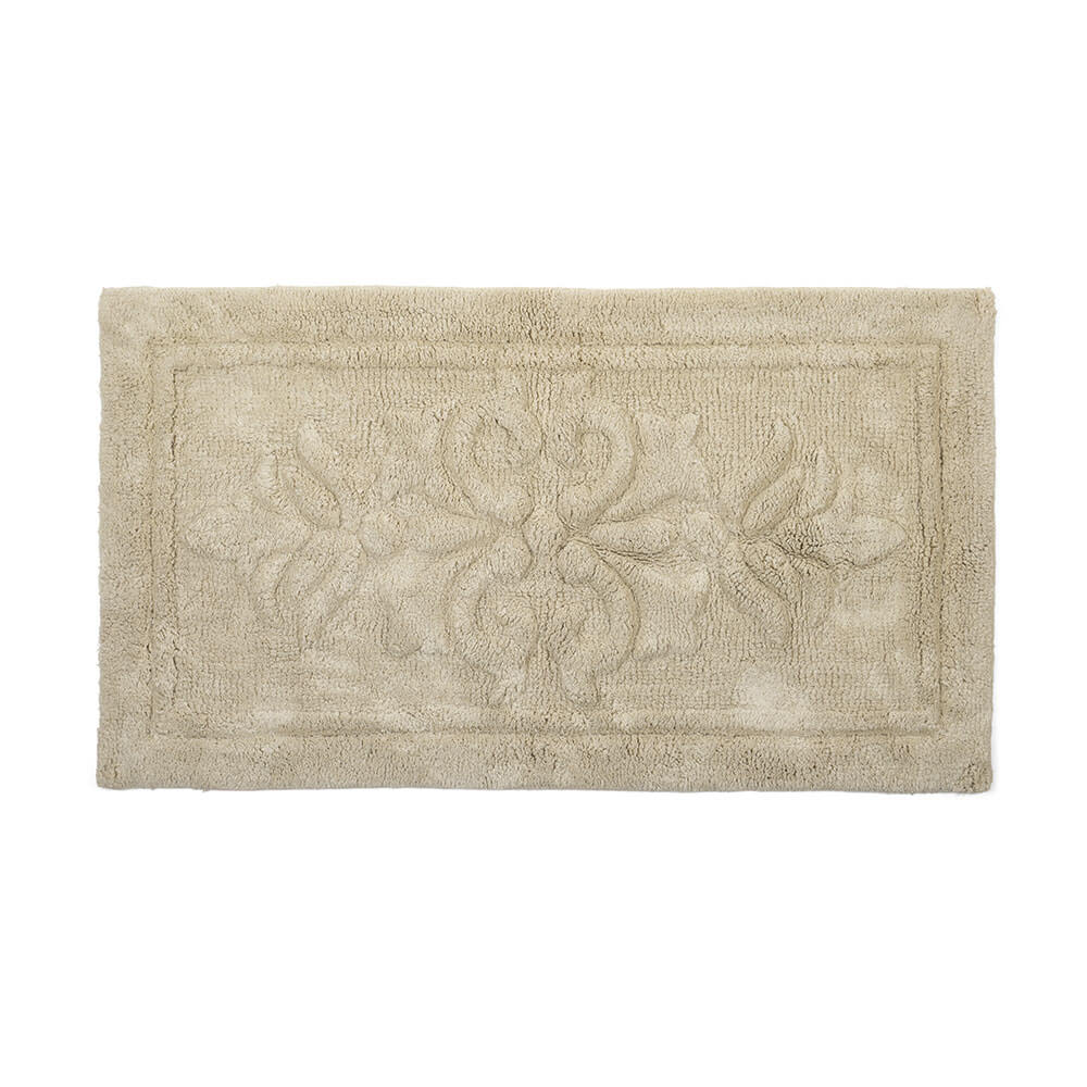 Tapis de salle de bains Nuvole di Stoffa en beige avec un élégant motif d’arabesques en relief. La surface douce et le travail décoratif ton sur ton donnent à la salle de bains un aspect raffiné et harmonieux, parfait pour les décors Shabby Chic et classiques.