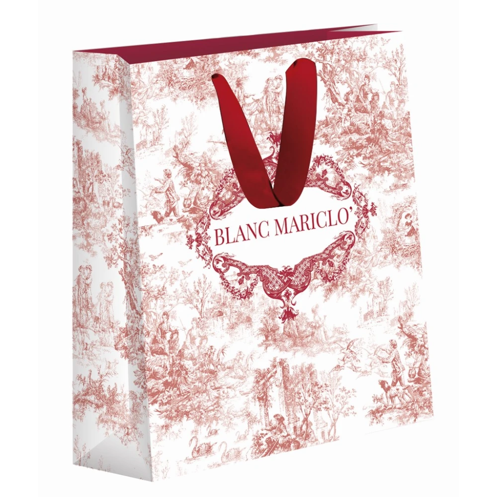 Shopper Blanc MariClò en papier rigide avec poignée en tissu rouge à motifs Toile de Jouy.