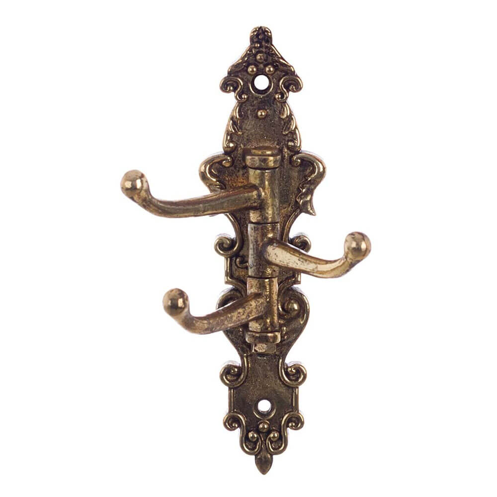 Appendino in peltro con 3 ganci orientabili e placca decorata in stile barocco. Finitura oro anticato per un tocco shabby chic raffinato.