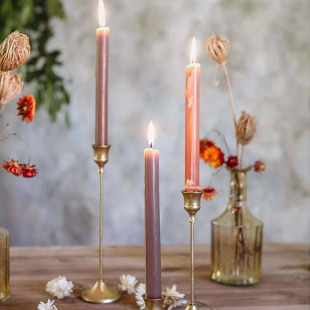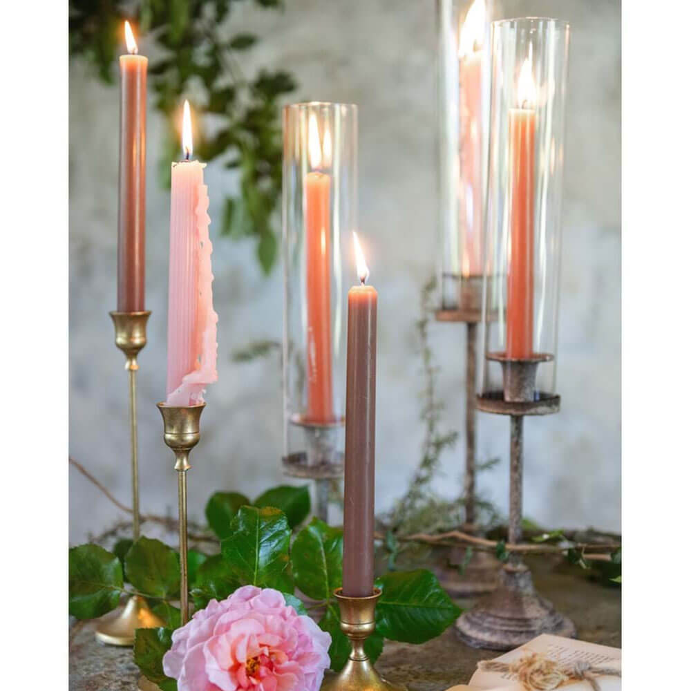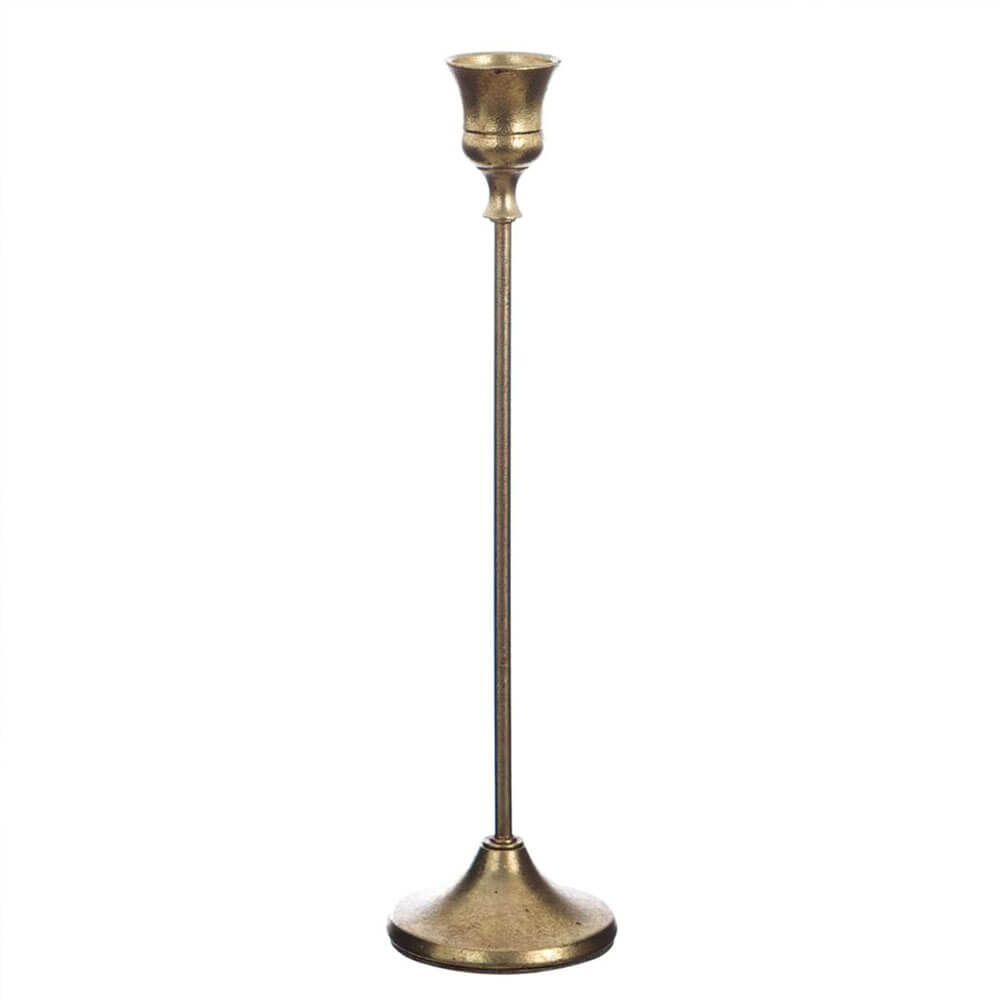 Porta candela in metallo brunito dal profilo slanciato e finitura calda. Un complemento elegante della collezione Andromeda.