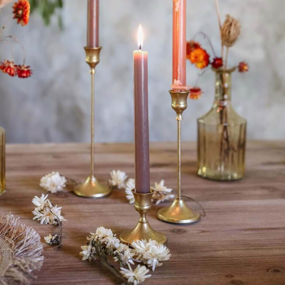 Il porta candela Blanc Mariclò della collezione Andromeda è realizzato in metallo con raffinata finitura brunita, che richiama il fascino delle atmosfere d’altri tempi. Le linee semplici e armoniose lo rendono un complemento decorativo estremamente versatile, ideale per candele sottili. Perfetto come centrotavola, su una consolle o su una mensola, dona un tocco caldo e romantico ad ambienti shabby chic, classici o country. Usato singolarmente o abbinato ad altri portacandele di altezze diverse, crea suggestivi giochi di luce.
