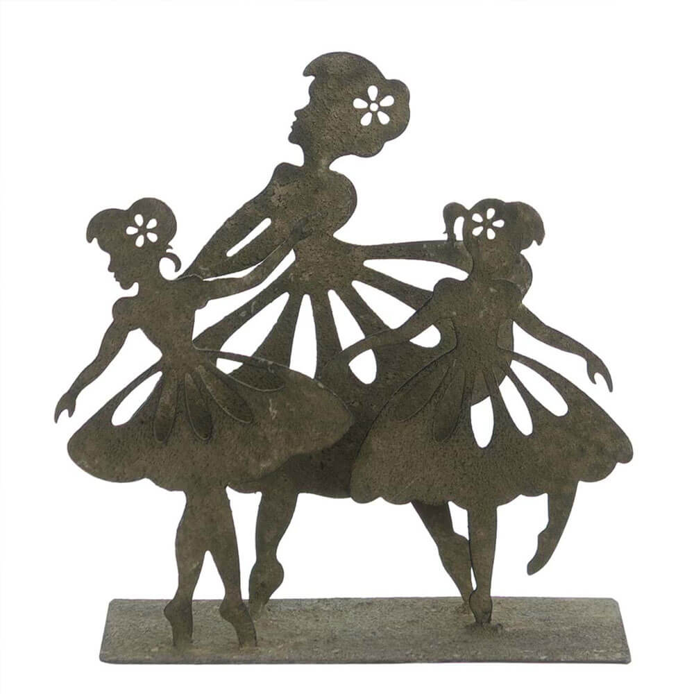 Questa elegante decorazione in metallo firmata Blanc Mariclò raffigura tre ballerine in una delicata coreografia, perfette per arricchire con grazia ambienti interni o esterni coperti. La lavorazione traforata e l’effetto anticato conferiscono un tocco poetico e vintage alla figura, in perfetto stile shabby chic.