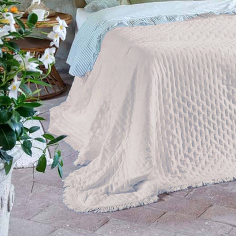 La trapunta 1 piazza color naturale della collezione Petali Uniti firmata Blanc Mariclò unisce semplicità e raffinatezza in un unico elemento d’arredo. La tonalità neutra e calda si adatta perfettamente a stili shabby, country e contemporanei, mentre la texture trapuntata dona un effetto visivo elegante.