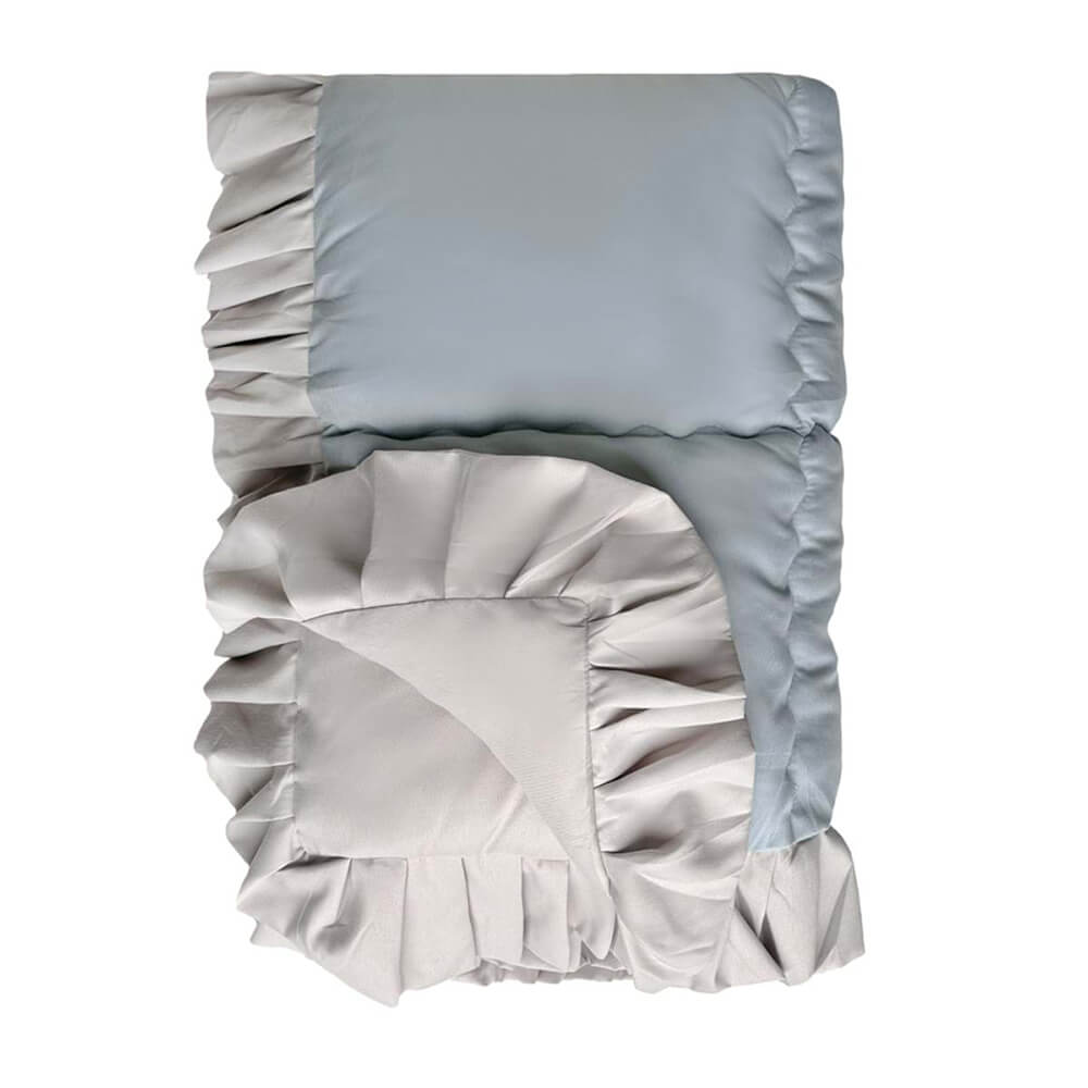 Trapunta shabby matrimoniale azzurro cielo double face con frill.