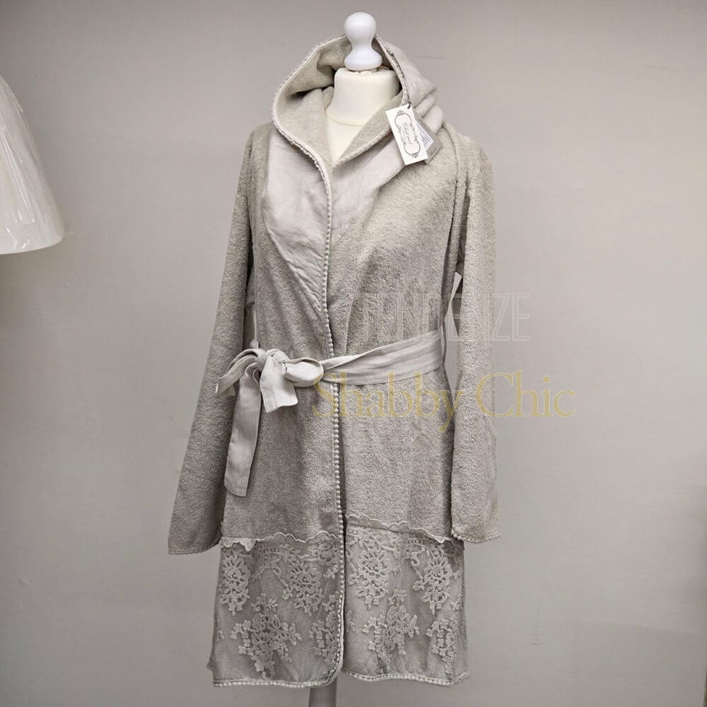 Chez Moi Accappatoio Donna collo sciallato Flora Argilla L