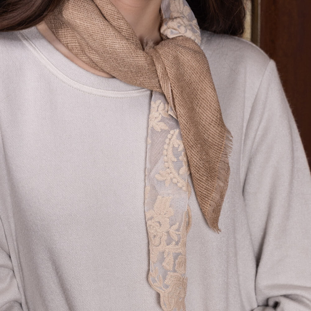 La striscia in pizzo, di 15 cm, aggiunge un dettaglio delicato e femminile, rendendo questo carré un accessorio versatile e chic. Le dimensioni di 63×71 cm permettono di indossarlo in vari modi, garantendo sempre un tocco di classe.