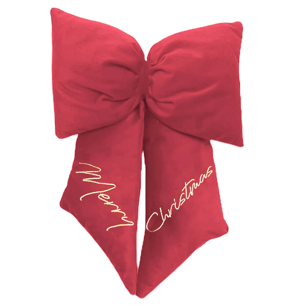 Fabricado en suave terciopelo rojo intenso, este lazo Clodette está acolchado para ofrecer una estructura definida y voluminosa. Las solapas descendentes están decoradas con las palabras “Feliz Navidad” bordadas en hilo de oro brillante, con un trazo elegante y armonioso. El anudado central le confiere movimiento y estilo, por lo que es perfecto para colgar o integrar en arreglos festivos.