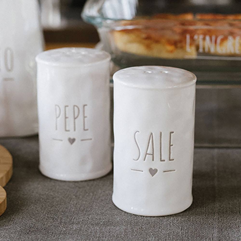 Coppia in ceramica barattoli sale e pepe, collezione My Home firmata da Nuvole di Stoffa