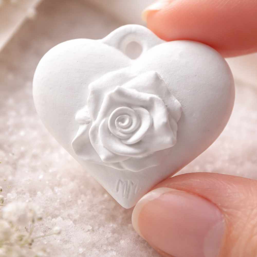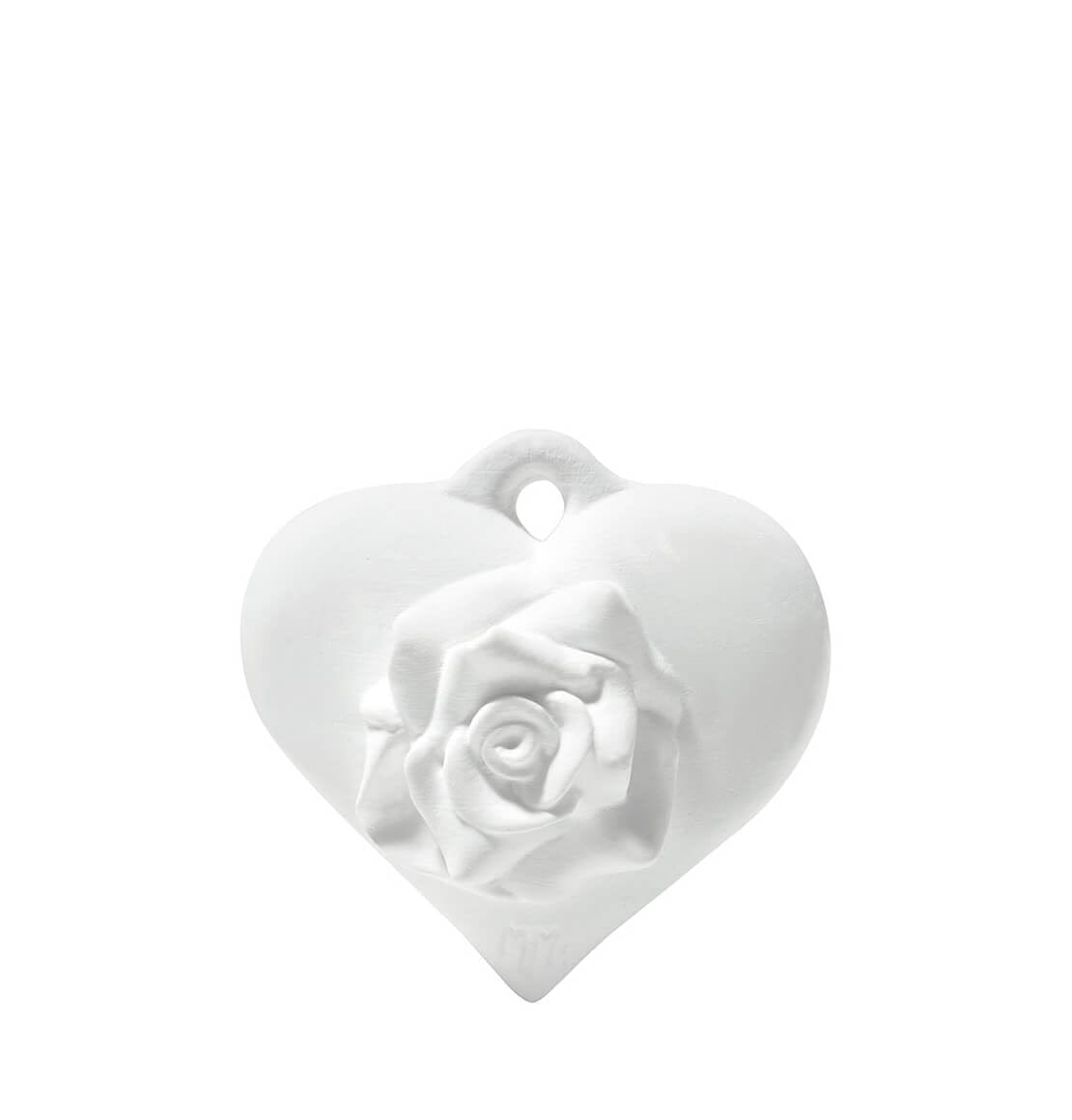 - Cuore in gesso profumato con rosa in rilievo