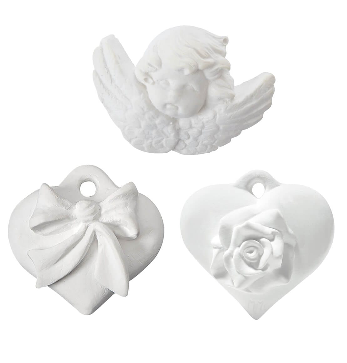Decorazioni in gesso profumato ogni forma, meticolosamente cesellata a mano, nei laboratori Mathilde M. è interamente impregnata di profumo, rilascia lentamente il dolce profumo