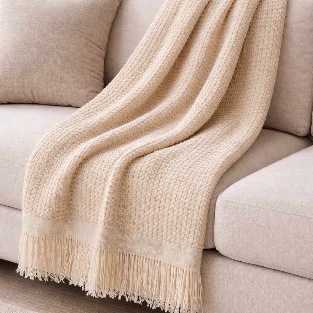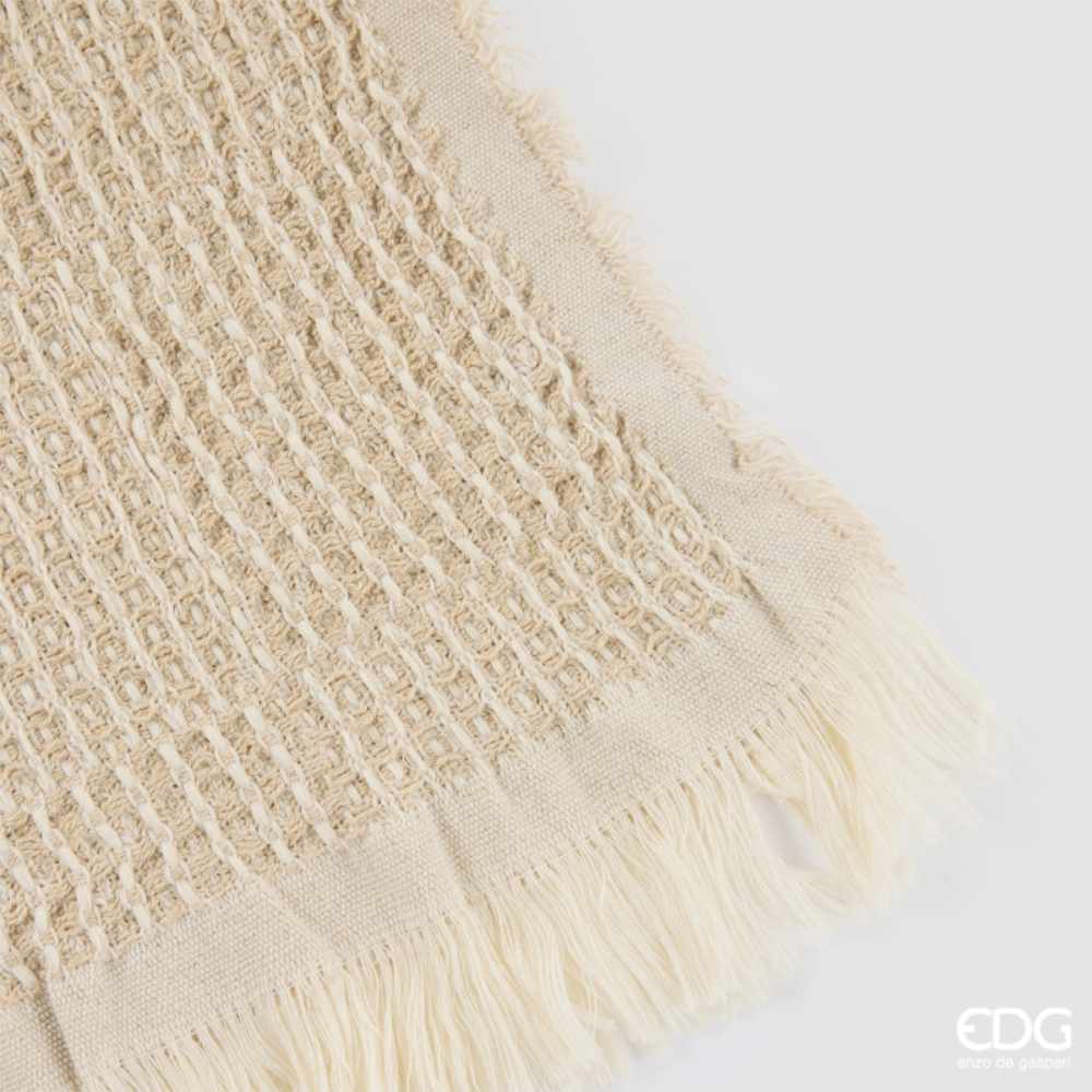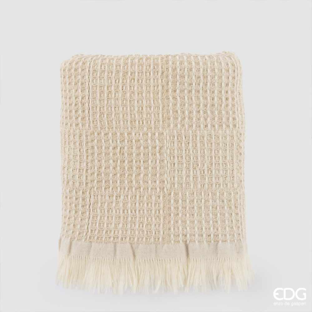 Coperta a quadretti beige e avorio in misto lino, morbida e materica, con frange. In scatola regalo, lavabile.