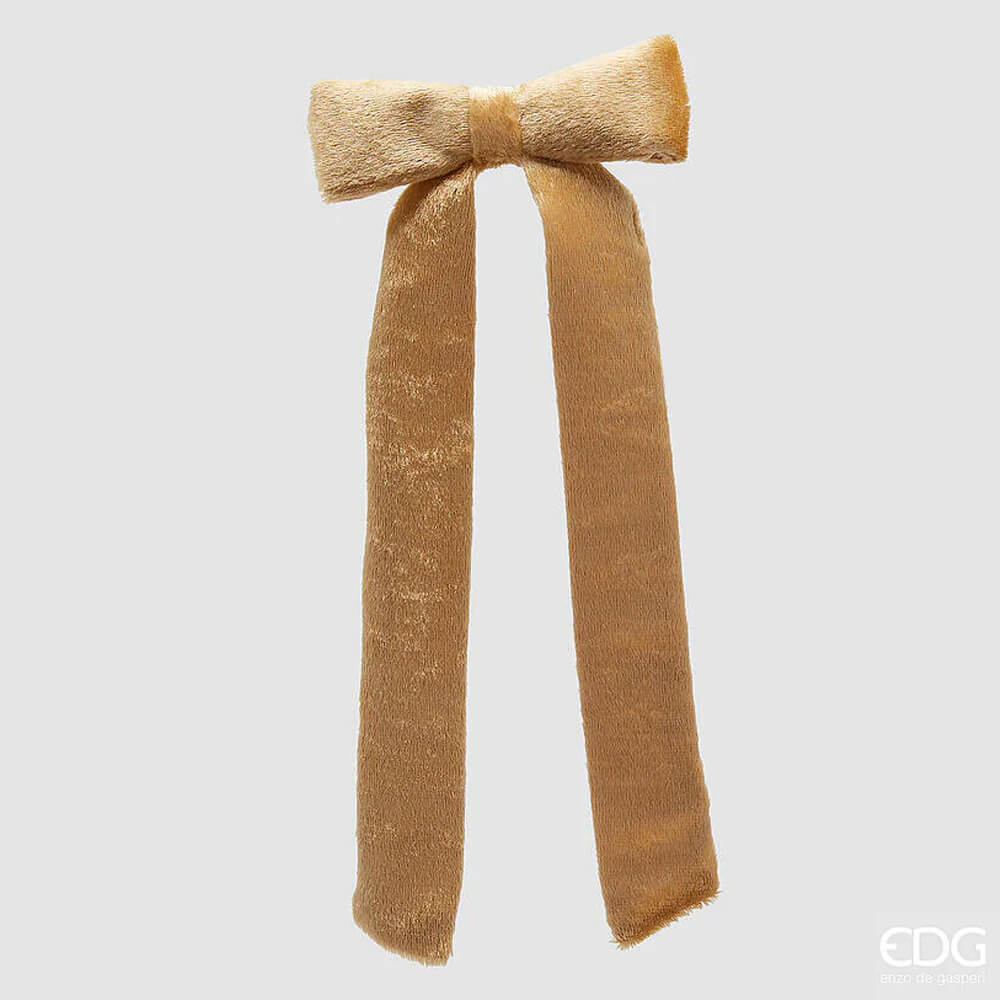 Il fiocco in velluto Enzo De Gasperi color oro è un accessorio raffinato ideale per arricchire decorazioni natalizie, ghirlande o pacchi regalo.