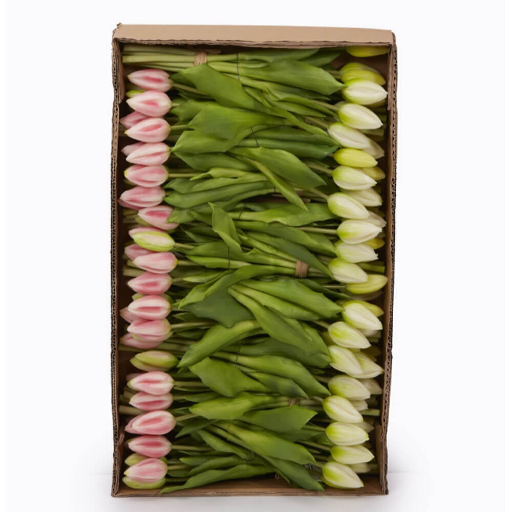 Questo mazzo di tulipani firmato Enzo de Gasperi è composto da 9 boccioli chiusi Real Touch, con una combinazione armoniosa di 5 boccioli più grandi e 4 più piccoli.