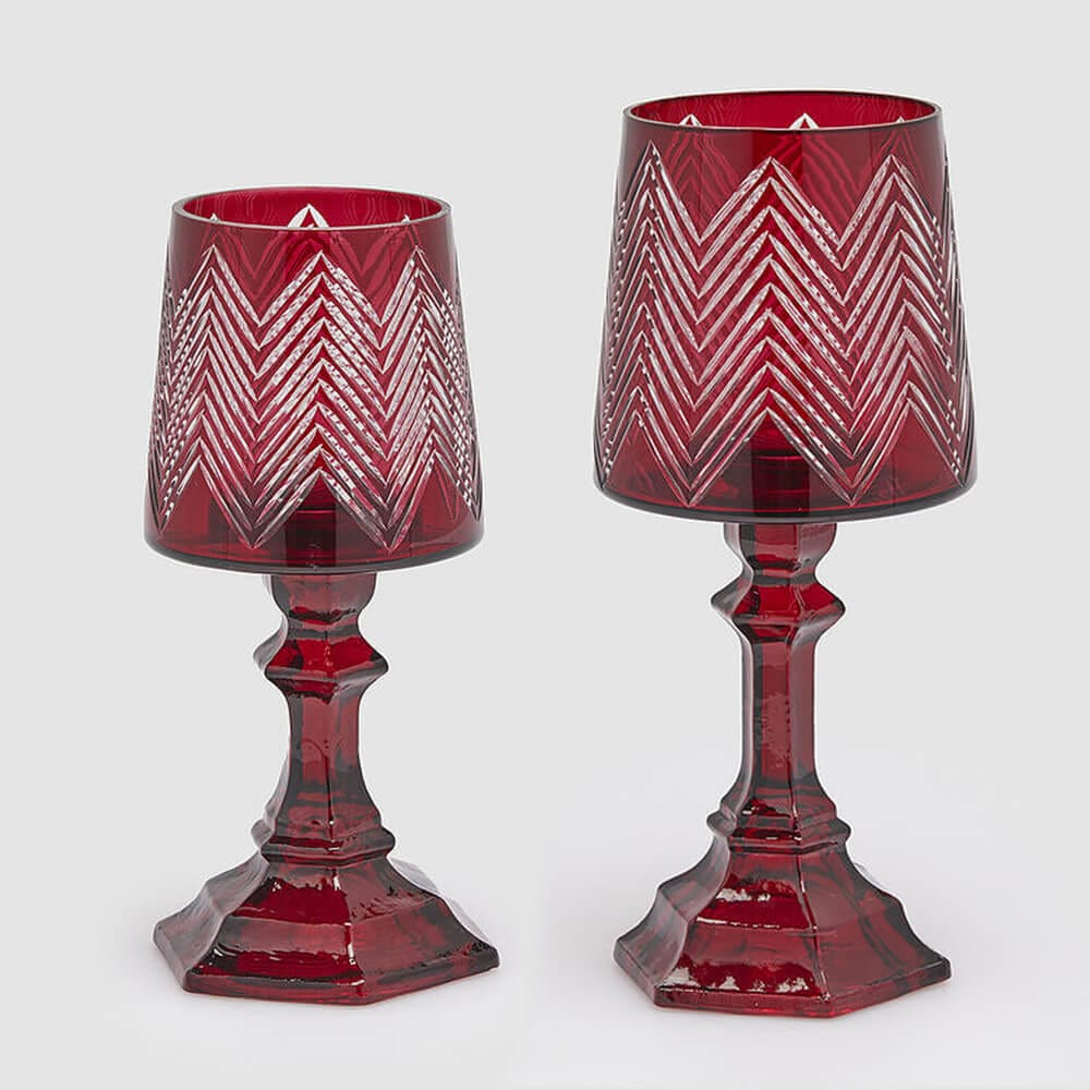 Elegante portacandela in vetro color rosso, progettato per aggiungere un tocco di charme e raffinatezza a qualsiasi ambiente.